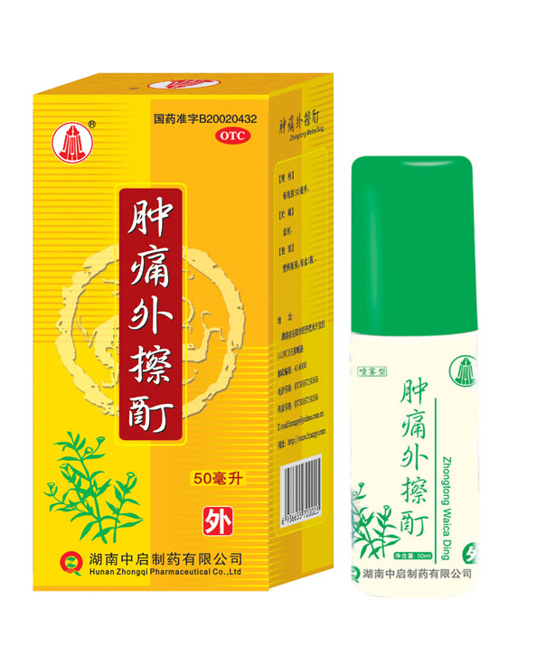 腫痛外擦酊主要是由墨旱蓮、大黃、冰片、樟腦等純天然藥物經(jīng)過(guò)科學(xué)的方法制作而成。 方中君藥大黃味苦性寒,功能瀉熱毒,破積滯,行淤血,常以外用。臣藥墨旱蓮味甘酸性涼,功具“涼血養(yǎng)陰,退火消腫”(《分類草藥性》、《本草經(jīng)疏》)。佐藥冰片,辛苦性涼,功擅通壅塞,散郁火,消腫止痛,并以其辛香走竄之氣,助君臣二藥通透肌膚,直達(dá)病所而迅速發(fā)揮作用;樟腦味辛性熱,方中用量少,以其味辛,能助冰片之透達(dá),以其性熱并可協(xié)調(diào)諸藥,防前藥之過(guò)于寒涼而凝滯氣血為使藥。全方組合具有清熱解毒,活血和營(yíng)、消腫止痛之功效。本方擇藥精當(dāng),以酊劑外用,使藥力直達(dá)藥所,見(jiàn)效快,使用方便。